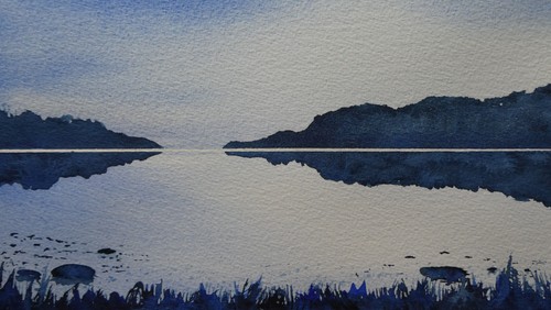 Fotografierne anvendes til fortolkning af det oplevede, af farverne og kontrasterne i landskabet/naturen. Akvarellen maler jeg med få farver, megen vand og masser af farvepigment i penslen. Tekstur i papiret og brug af flere forskellige virkemidler skaber akvareller, hvor udtrykket resulterer i et let, gennemskinneligt, luftigt og stemningsfyldt udtryk.